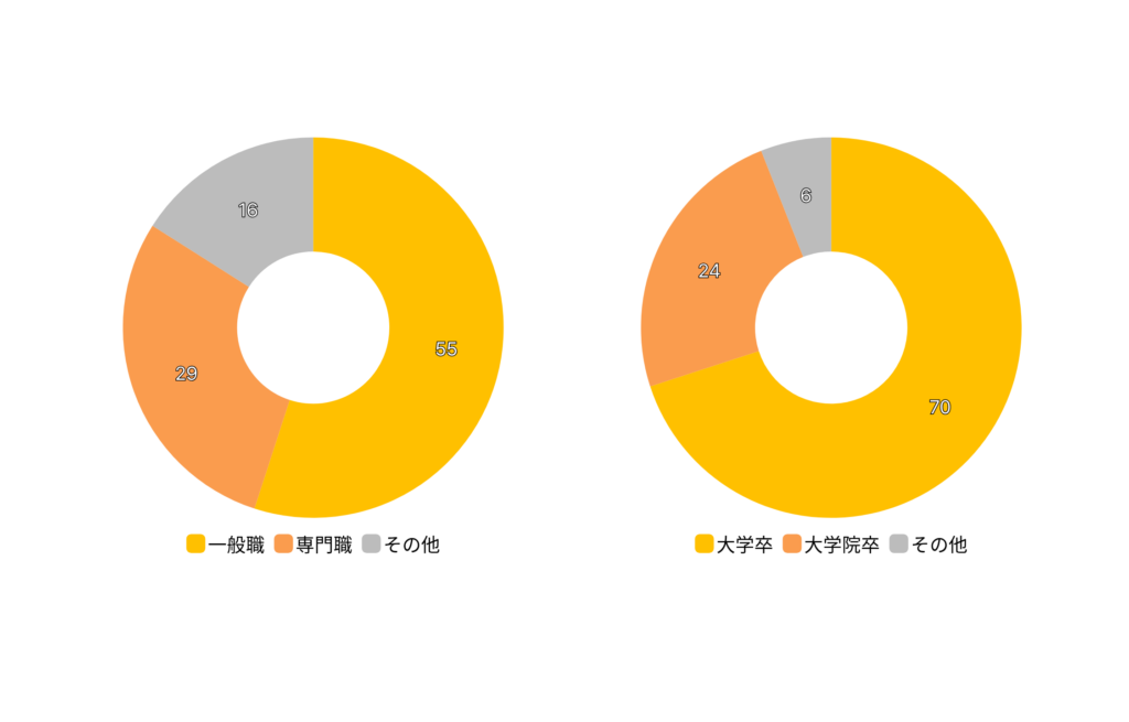 大学卒(70%)、大学院卒(24%)、その他(6%)